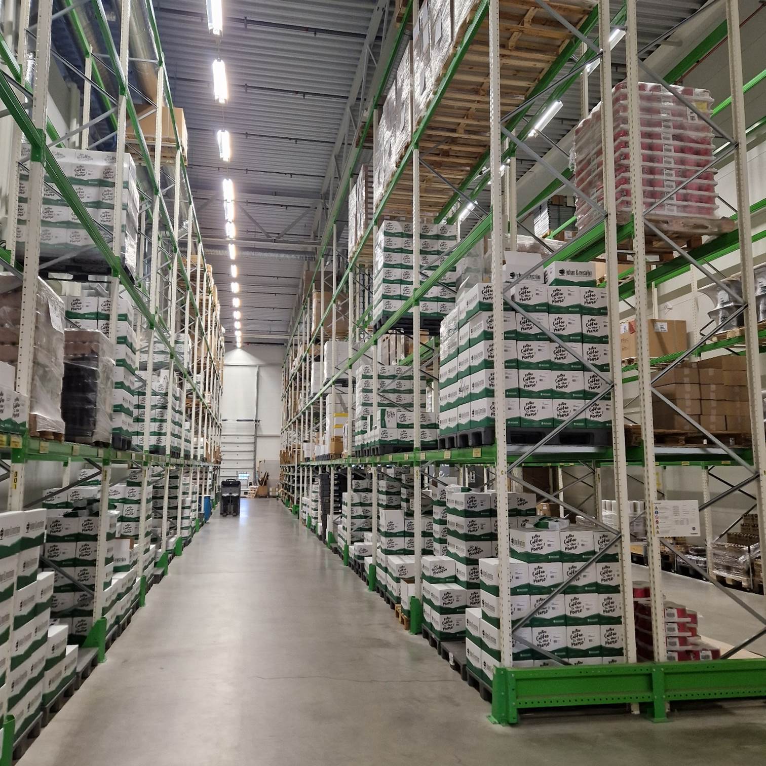 In het eindmagazijn worden alle afgewerkte producten vervolgens op hoge rekken gestapeld. De koffiebranderij van Johan & Nyström verzendt ongeveer 1700 ton koffie per jaar. Ongeveer 60% wordt verscheept naar Espresso House-cafés en de rest gaat naar wederverkopers, caféketens, consumenten en kleine cafés.